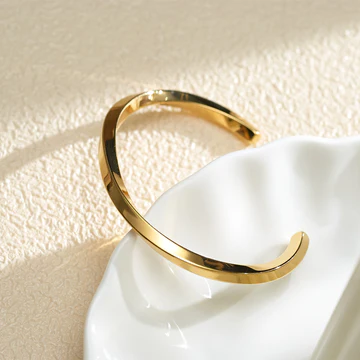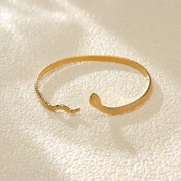 The Chic Serpentine Bracelet introduces a sleek curve inspired by fluid motion. Its sculpted shape wraps naturally around the wrist, creating a clean line that feels modern and refined. Crafted from 18K gold plated 316L stainless steel, the surface carries a smooth polish that pairs well with structured tailoring or relaxed weekend looks.